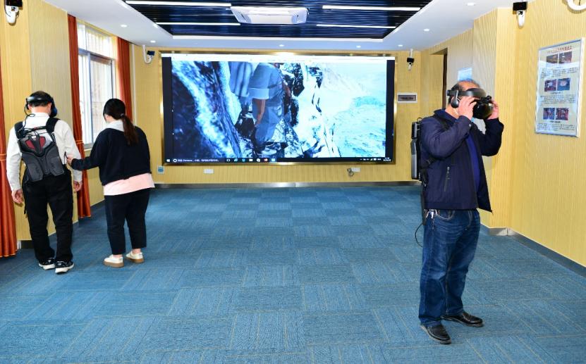 在调研交流会上,公司徐秦法经理对网络中心多年来在网络建设、信息化应用、门禁管理等方面的大力支持给予肯定并表示感谢,同时希望网络中心今后在公司线上学习平台建设、后续维护、资源存储等各方面给予支持,在公司VR虚拟学习实验室资源建设、全息影像教学技术引用方面提供技术帮助,在公司旧有弱电特别是电话线乱拉乱建方面协助进行整改,美化公司环境。赵主任表示,网络中心将竭尽全力支持公司的信息化建设,服务于教学科研和管理工作,在资源存储、应用开发、网络技术特别是基于5G的应用等方面给予全方位的支持、提供一切帮助,紧紧围绕公司的统筹决策,积极融入和助力公司的广西壮族自治区马克思主义理论一流团队建设。网络中心调研团队还参观了公司特色书屋,体验了VR虚拟教学场景等。
