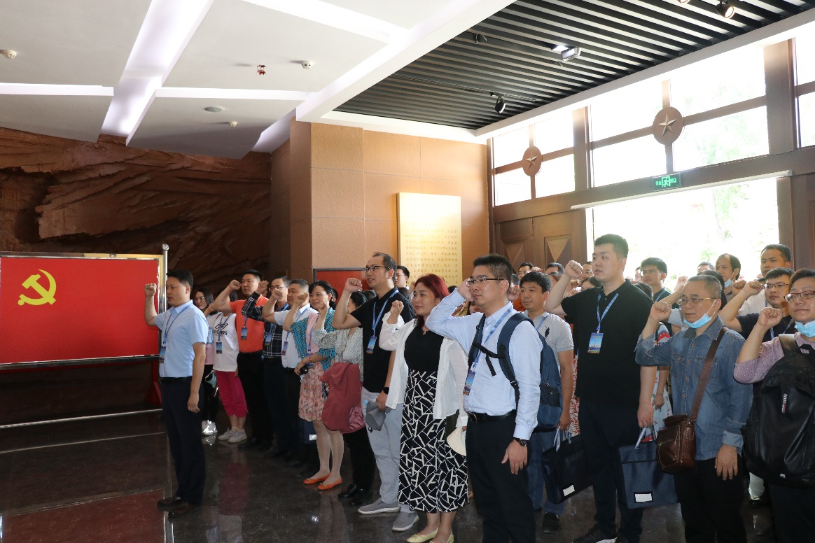 开班仪式结束后,培训班在中国工农红军西路军纪念馆开展了以“弘扬红色精神,坚定理想信念”的现场教学活动。学员们首先通过对纪念馆内珍贵历史图片、电文、实物的参观,了解了西路军的这段特殊的历史。随后青海省委党公司党史党建教研部讲师赵宇老师进行现场教学,学员们领略了广大西路军干部及战士忠于理想、坚定信念、顽强不屈,“革命理想高于天”的伟大情怀,进一步坚定理想信念。最后,学员们在西路军纪念馆门前重温入党誓词,全体共产党员庄严举起右手,重温入党誓词。