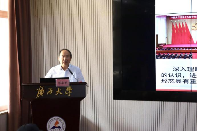 邓卓明教授在报告中认为,意识形态工作是党的一项极端重要的工作。进入新时代以来,我们党更加重视意识形态工作,通过加强和改进意识形态工作,使我国意识形态领域形势发生了全局性根本性转变。他着重从更加强化了党对意识形态工作的全面领导;更加彰显了马克思主义在意识形态领域的指导地位;更加提高了党对意识形态工作重要性的认识;更加全面落实了意识形态工作责任制;更加提升了全社会的凝聚力和向心力五个方面阐述了这一历史性改变。