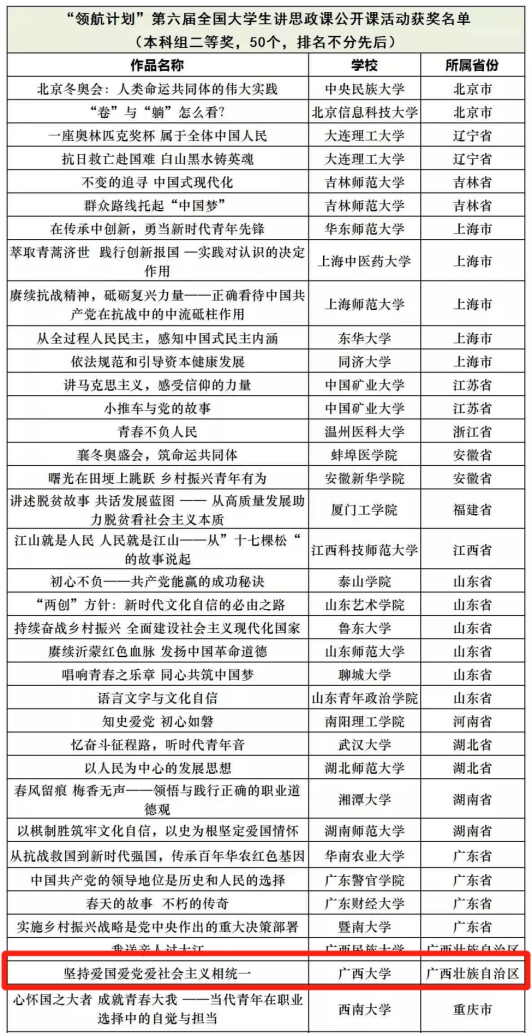 据悉,全国高校老员工讲思政课公开课展示活动是教育部组织开展的习近平新时代中国特色社会主义思想大学习领航计划系列主题活动之一,本次活动共评选出本科组二等奖50名。