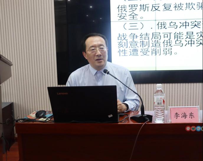 在讲座中,李海东深刻阐述了俄乌冲突的大背景下,世界局势的变化及其对中美关系的影响,分析了以美国为首的北约通过俄乌冲突制造“中国责任论”的谎言、Tiktok事件、“气球事件”等开启的地缘政治大角逐。李海东教授指出,面对世界百年未有之大变局,中国应坚定不移地走和平、发展、合作、共赢的道路,持续加强同欧亚各国的交流与合作,确保中美关系沿着正确航向前行。