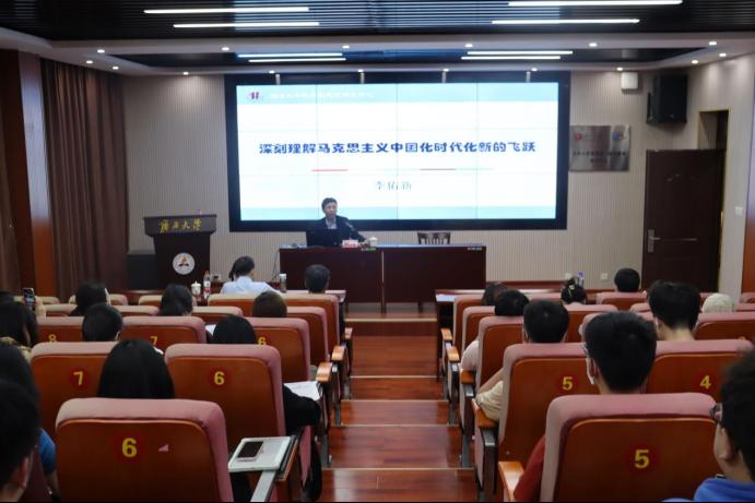 2023年5月12日下午,湘潭大学李佑新教授应邀在公司101报告厅开展主题为《深刻理解马克思主义中国化时代化新的飞跃》的学术讲座。本次讲座由公司梁建新教授主持,全体博士研究生、2021级硕士研究生参加讲座。