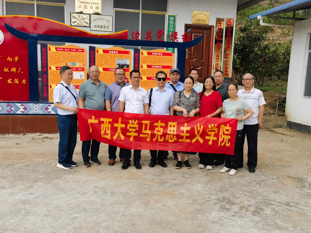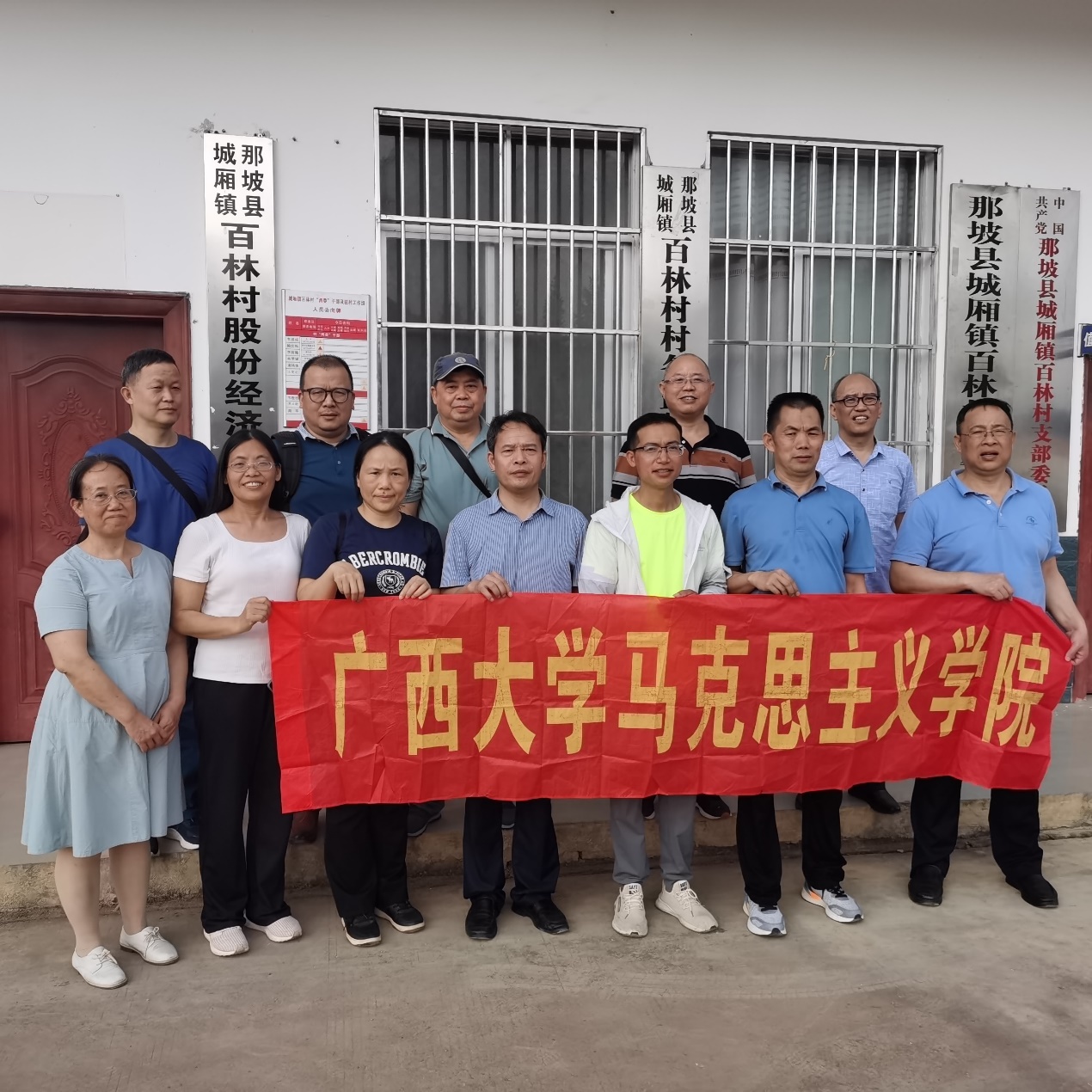 为了扎实推进区级一流课程《毛泽东思想和中国特色社会主义理论体系概论》建设,太阳成集团tyc概论教研部教师在公司副经理梁建新教授带领下,于2023年5月20日至21日赴广西那坡县城厢镇百林村、百都乡红坭村红心蜜柚产业基地、乡政府党群服务中心等地考察乡村振兴与推进共同富裕、基层党建与乡村治理等工作。