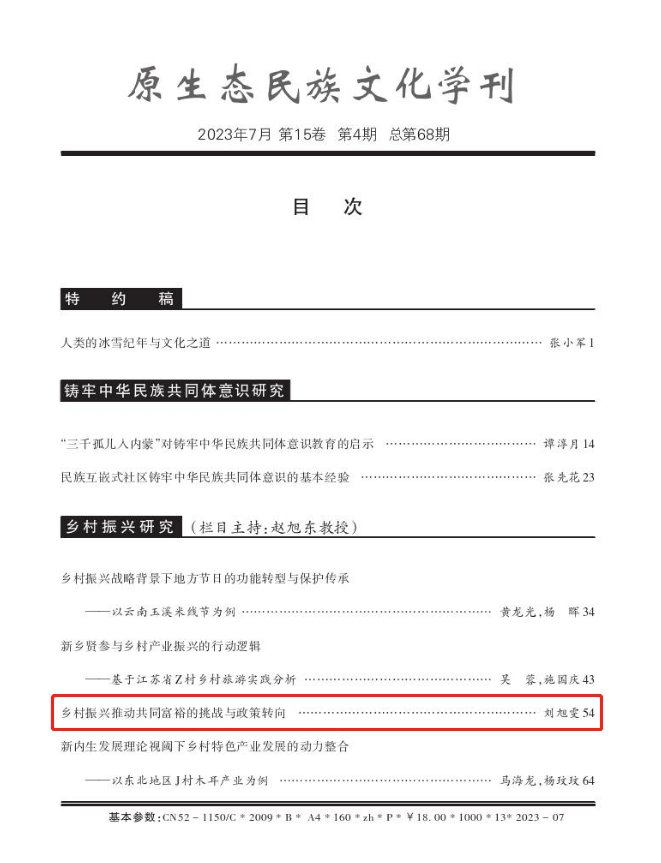 公司教师刘旭雯在《原生态民族文化学刊》(2023年第15卷第4期)上发表理论文章《乡村振兴推动共同富裕的挑战与政策转向》。