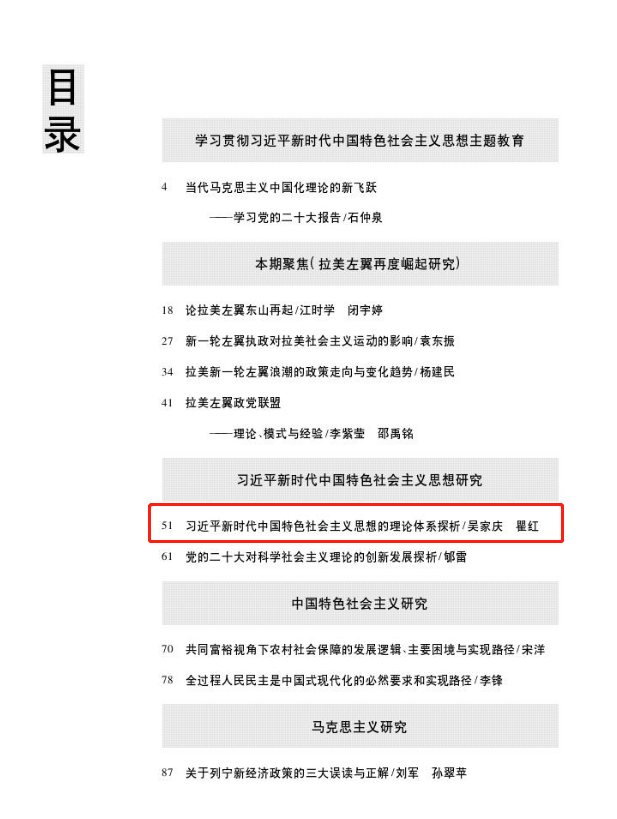 公司教师吴家庆、博士研究生瞿红在《当代世界社会主义》(2023年第3期)上发表理论文章《习近平新时代中国特色社会主义思想的理论体系探析》。