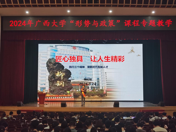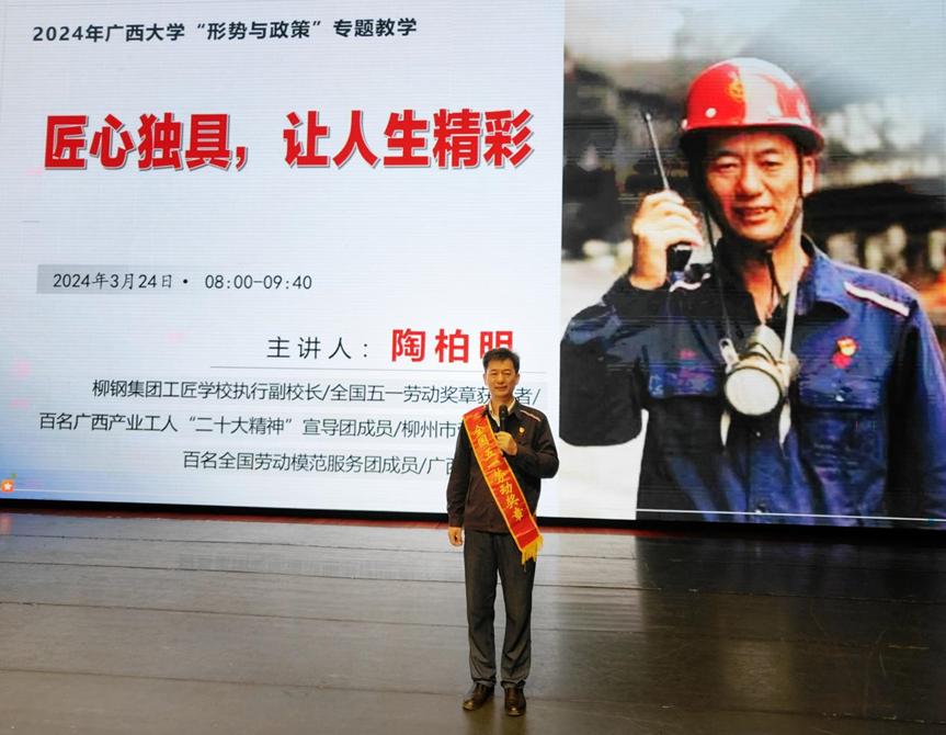 2024年3月24日上午,“形势与政策”课程专题教学报告会在公司大礼堂如期举行。全国五一劳动奖章获得者、柳钢集团工匠公司执行副董事长陶柏明同志为到场员工做了题为“匠心独具,让人生精彩”的报告。