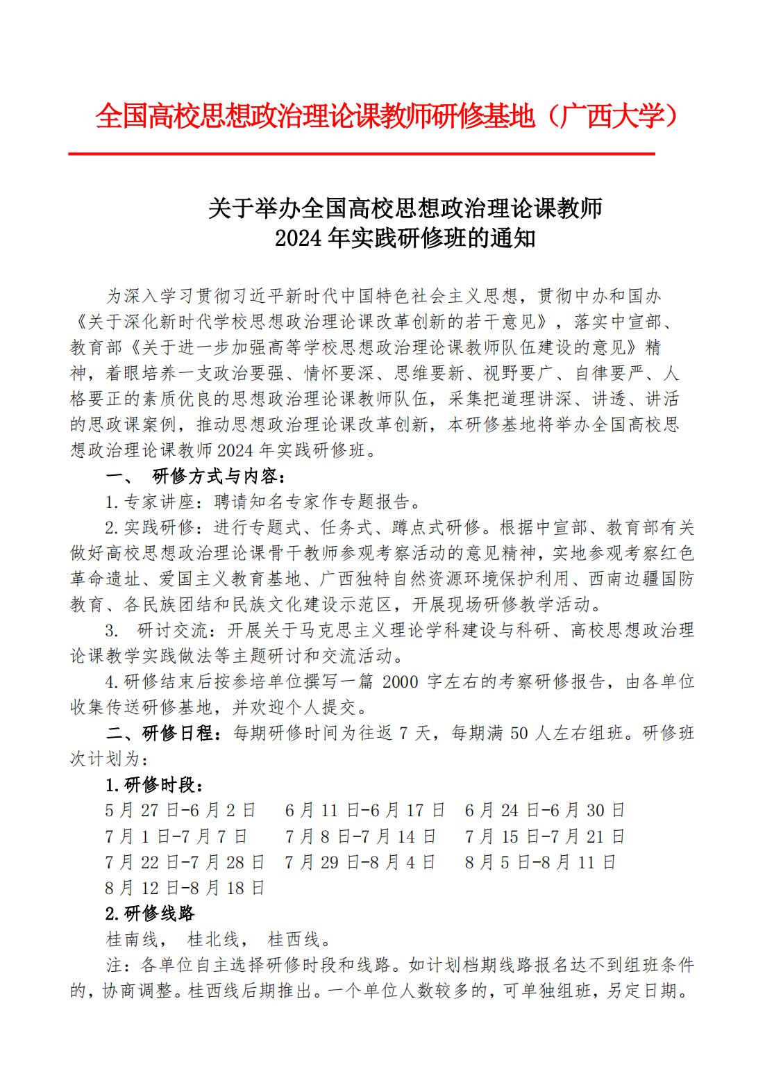 2024年全国高校思想政治理论课教师研修基地(太阳成集团)实践研修班通知.pdf