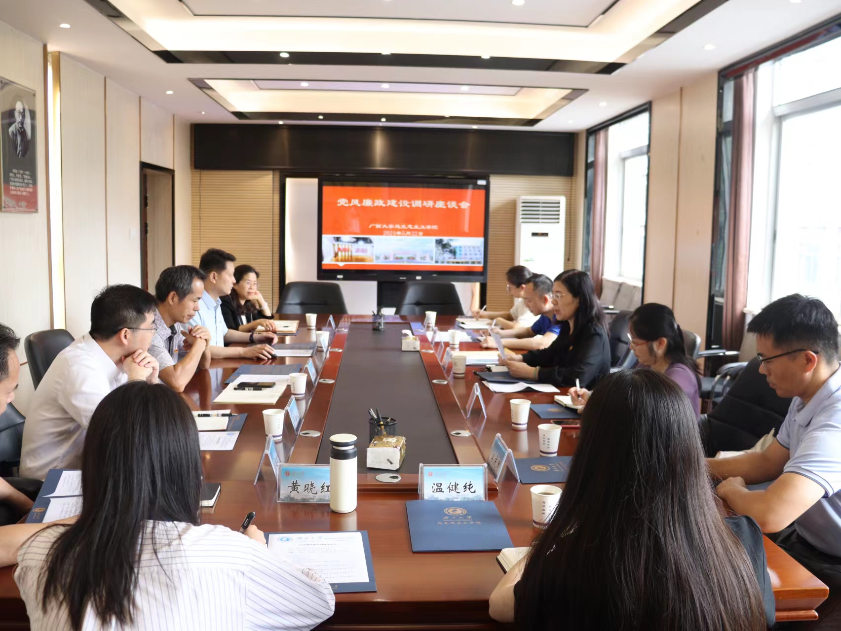 在调研座谈会上,徐秦法详细汇报了近年来公司在党风廉政建设、师德师风教育、廉政主题研究以及师生廉洁教育等方面采取的主要措施、取得的有关成效及下一步工作规划,并就公司师生在教学、科研、竞赛中取得的突出成果做了重点介绍。