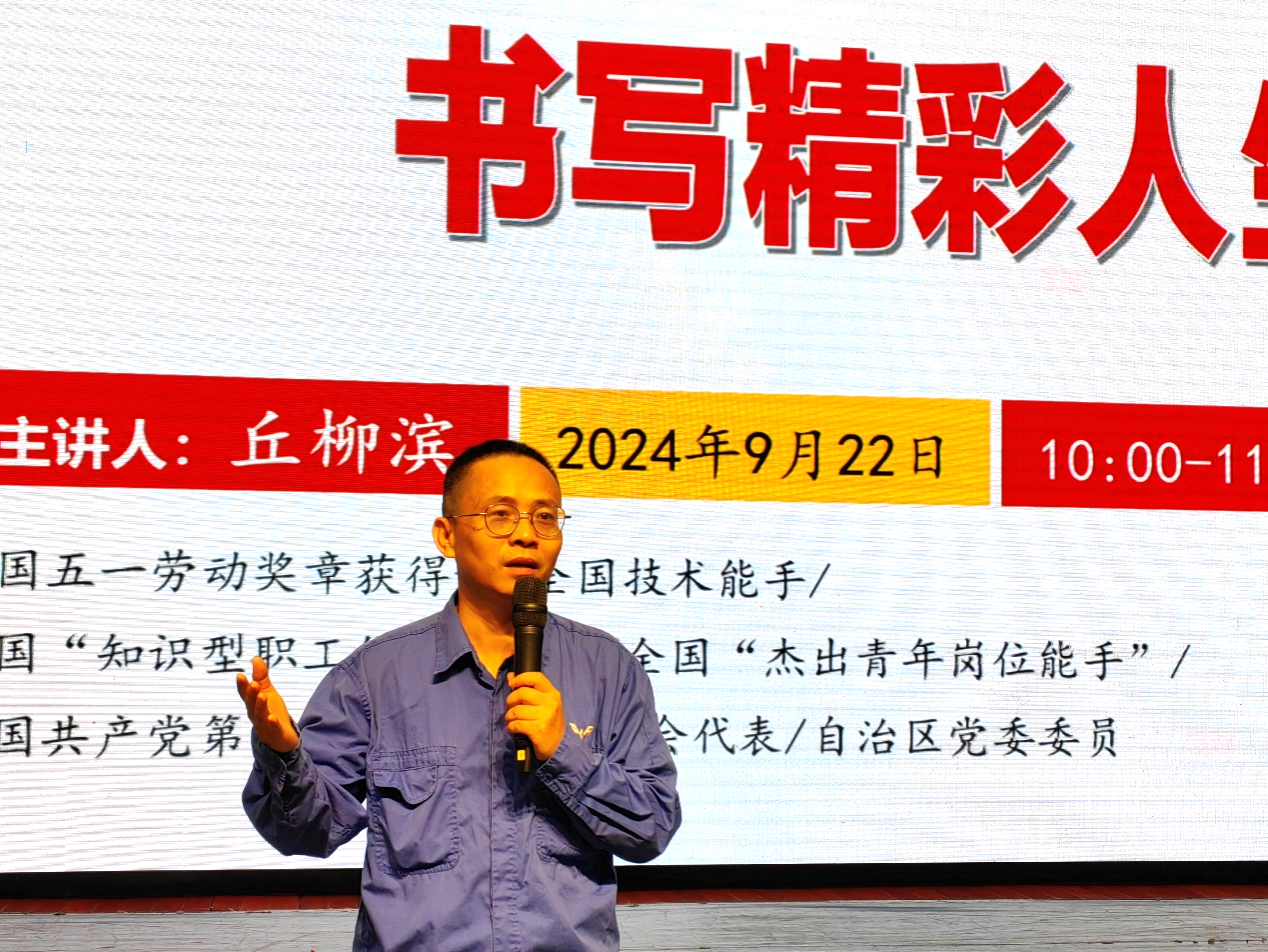 2024年9月22日,在公司大礼堂举行的2024年秋季“形势与政策”课程专题教学报告会上,广西汽车集团有限公司首席技能专家、特级技师、正高级工程师、广西首批科学家精神宣讲团成员、全国“五一劳动奖章”获得者丘柳滨同志给同学们带来了题为“爱岗敬业——书写精彩人生”的专题教学报告。