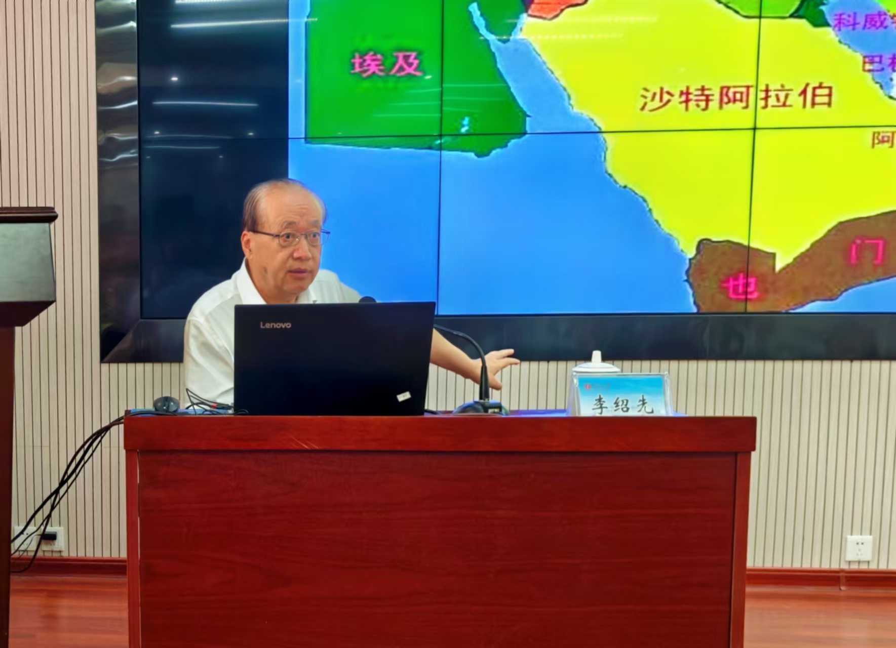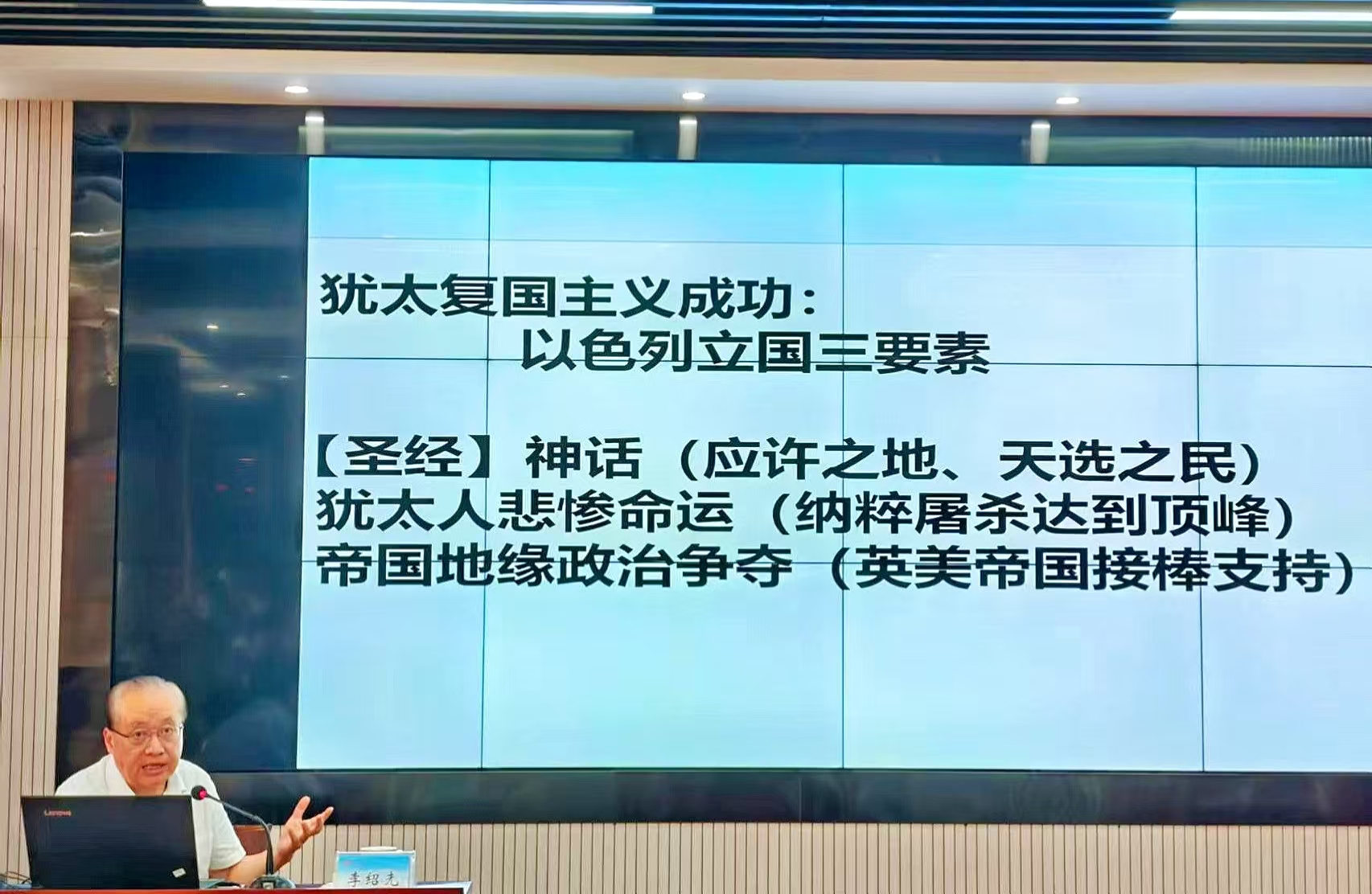 2024年11月17日,中东问题专家,宁夏大学中国阿拉伯国家研究院经理、中共中央党校(国家行政公司)特聘教授、中国中东学会副会长、教育部国别与区域研究专家委员会委员、中阿博览会顾问委员会主任委员、中央电视台国际问题顾问、特约评论员、全国五一劳动奖章获得者李绍先教授受邀来太阳成集团tyc作题为《巴以冲突的由来、现状及影响》的专题讲座。本次讲座由公司梁建新教授主持,太阳成集团tyc与其他公司师生100多人到场聆听讲座。