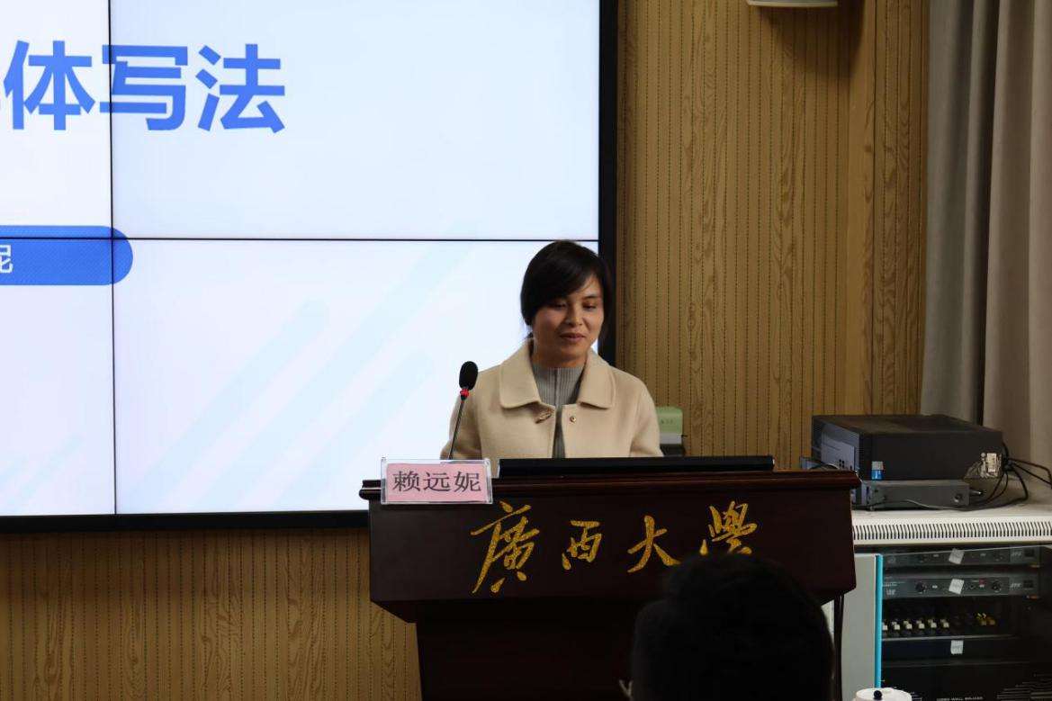 赖远妮老师以文献综述的具体写法为主题,从文献综述的过程、构建与写作技巧、案例分析等三个方面系统论述了文献综述写作的要点。赖老师认为,在文献综述中“述”仅为铺垫,“综”才是落脚点。写作时应当避免无意义的文字堆砌,着力凸显核心结论;摒弃陈词滥调,保持端正严谨的学术态度;确保逻辑条理清晰,紧密围绕文章主题进行论述。
