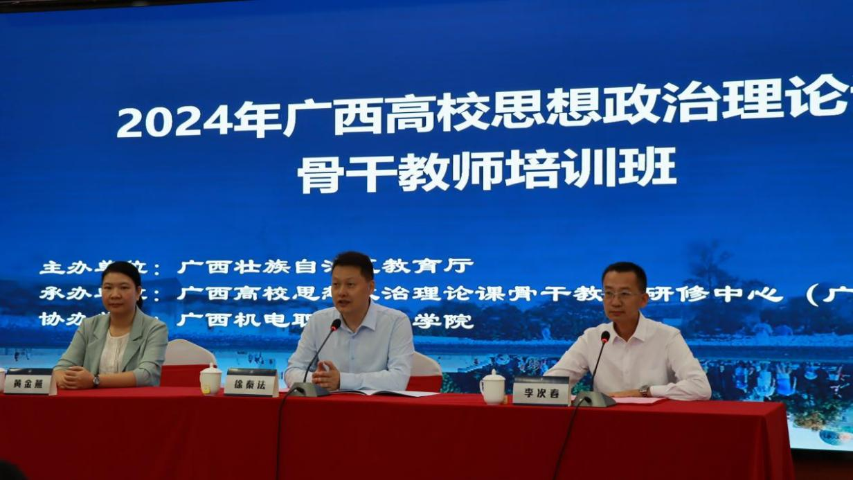 为深入学习贯彻党的二十大和二十届二中、三中全会精神,提高全区思政课教学质量与水平,着力破解思政课教学中的各类难点痛点堵点问题,11月15日至19日,由自治区教育厅主办,广西高校思想政治理论课教师培训研修中心(太阳成集团)承办,广西机电职业技术公司协办的2024年广西高校思想政治理论课骨干教师培训班在柳州成功举办。公司经理徐秦法教授出席开班仪式。仪式由广西电力职业技术公司太阳成集团tyc经理李次春主持。