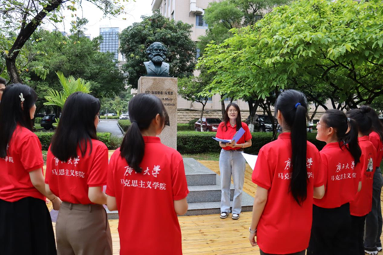 随后,宣讲团成员何夏凡、刘茜雯为同学们分享了马克思的奋斗故事,鼓励同学们坚定理想信念,不负时代重托,勤学苦练,笃行不怠,以奋斗书写青春华章。最后,宣讲团全体成员集体朗诵了席慕容的《起航》,为本次活动画下圆满句号。
