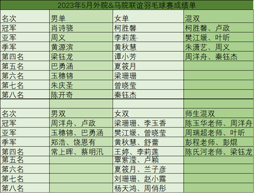 本次比赛分为男子单打、男子双打、女子单打、女子双打、混合双打、师生混合双打6个项目。下面,让我们一起回顾比赛场上的精彩瞬间吧!