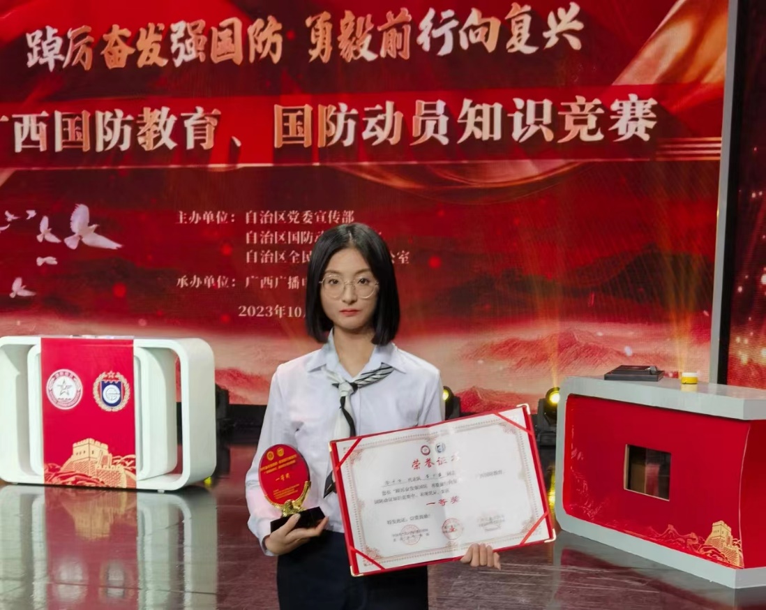 据悉,本次比赛从全区14个设区市代表队中评选出一等奖1名,二等奖2名,三等奖3名。获奖选手黄羽文表示,通过参赛,她和同学们对全民国防有了深入的理解,每个公民都应从自己做起,为国防建设贡献力量。