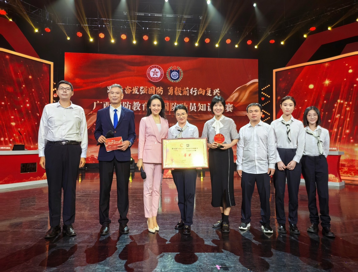 10月26日至27日,由自治区党委宣传部、自治区国防动员办公室与全民国防教育办公室联合主办的“踔厉奋发强国防 勇毅前行向复兴”——广西国防教育、国防动员知识竞赛决赛在广西广播电视台举行。经过激烈角逐,太阳成集团tyc2021级本科生黄羽文、常兴华所在的南宁市代表队在全区14个设区市代表中一举夺魁,荣获一等奖。