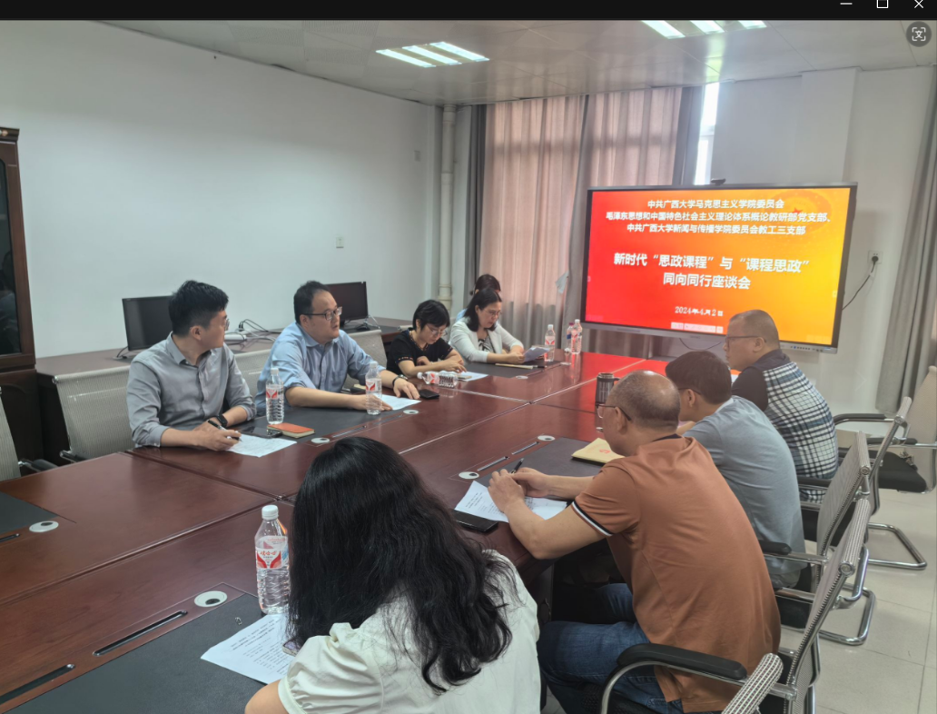 新闻传播公司陈瑞群老师围绕从工具理性到价值理性——广告专业课程思政建设路径;黄海珠围绕课程思政与教学实践的结合;宋存杰老师围绕思政元素在播音主持教学实践中的应用;李凯老师围绕“四个融合”提升新闻传播理论课程思政质量;薛强老师围绕坚持马克思主义新闻观—浅谈新媒体教学中的课程思政等做了交流发言。薛强老师还表示今后要进一步加强交流沟通,特别是在支部建设和教研室建设方面要加强联学共建活动。