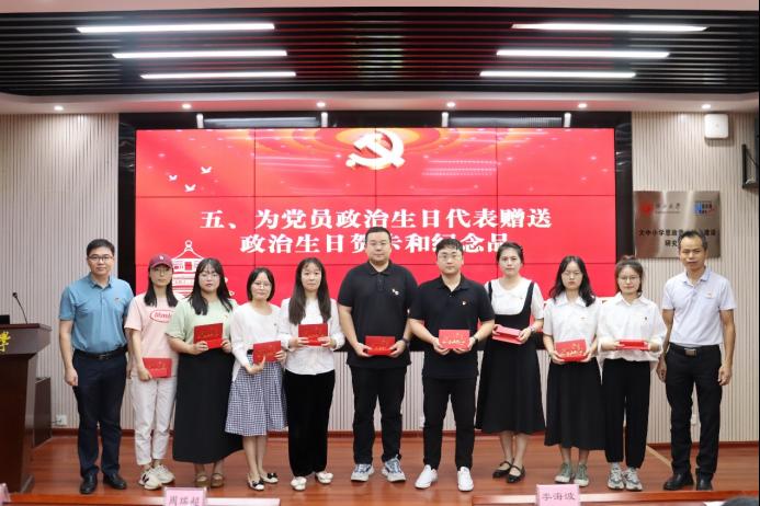 公司党委书记周瑞超老师、党委副书记李海波老师为党员政治生日代表赠送政治生日贺卡和纪念品,让党员同志们感受到来自党组织的温暖与关怀。