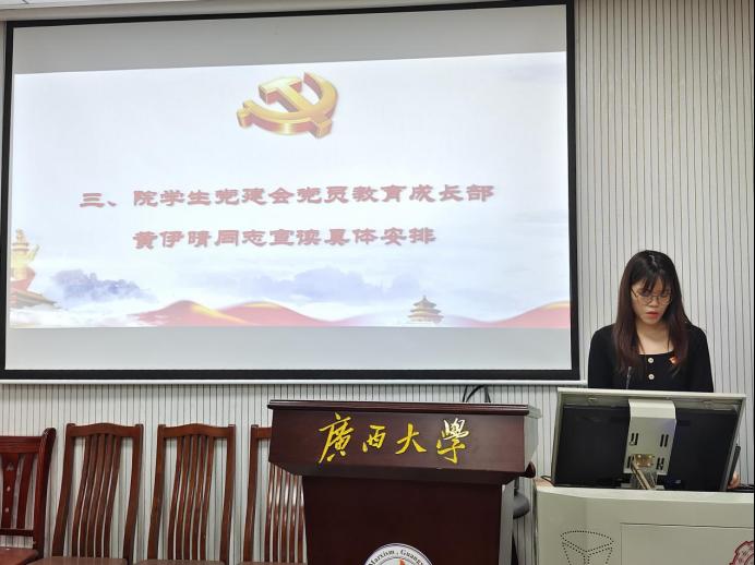 最后,党建会党员教育成长部负责人黄伊晴宣读了培训班的学习安排、纪律要求和结业标准。她强调,全体学员应自觉端正学习态度,不断在提升理论学习质效上下功夫、使长劲,力求学有所悟、学有所得,身体力行把学习成果转化为砥砺奋进、勇毅前行的内生动力。