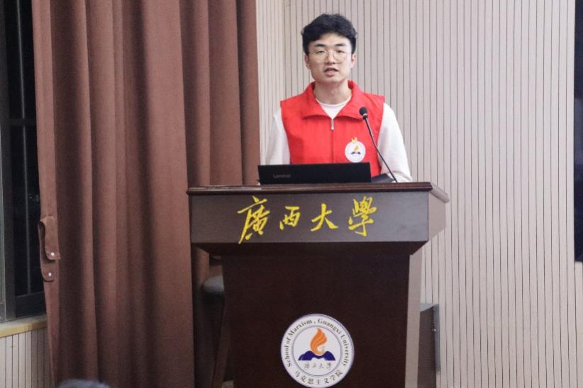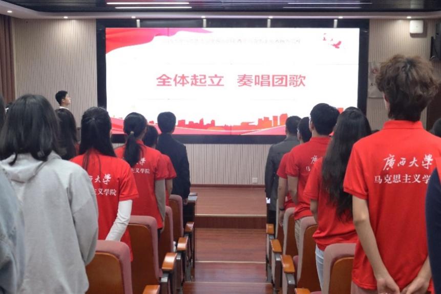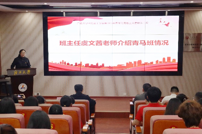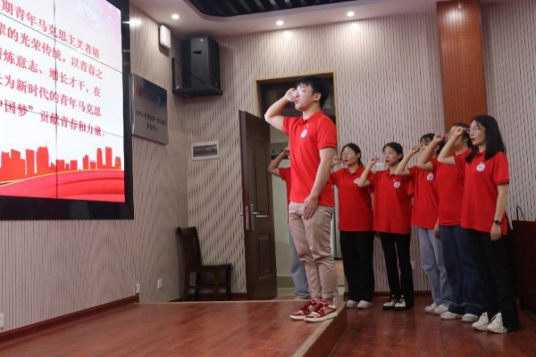 授旗结束后,第四期青马班班长李佳乐发言,表示新一期青马学员将秉承“青马”优良传统,躬身实践,努力成为懂马信马、传马悟马、学马用马的青年表率。接着,第四期青马班代表进行了宣誓,做出了为实现中华民族伟大复兴中国梦贡献青春和力量的庄严承诺。