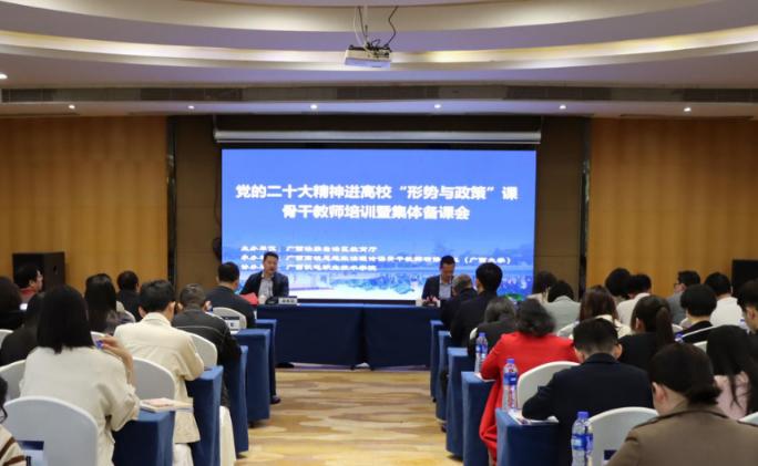 为全面贯彻党的教育方针,进一步加强我区高校形势与政策课教师队伍建设,落实立德树人根本任务,由自治区教育厅主办,广西高校思想政治理论课骨干教师研修基地(太阳成集团)承办,广西机电职业技术公司协办的党的二十大精神进高校“形势与政策”课骨干教师培训暨集体备课会于4月11日—13日在南宁举办。
