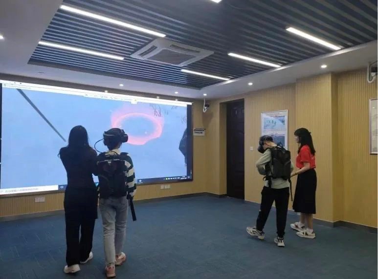 期间,生命科学与技术公司的同学们还通过VR虚拟技术体验了红军长征途中爬雪山、过草地等场景,从沉浸式体验中切实感受到了共产党人的艰苦奋斗历程。