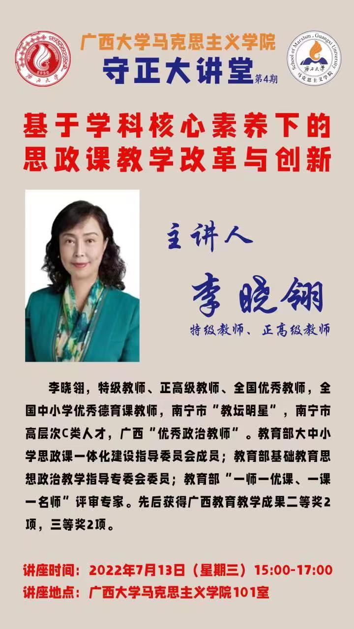 守正大讲堂 第4期||基于学科核心素养下的思政课教学改革与创新