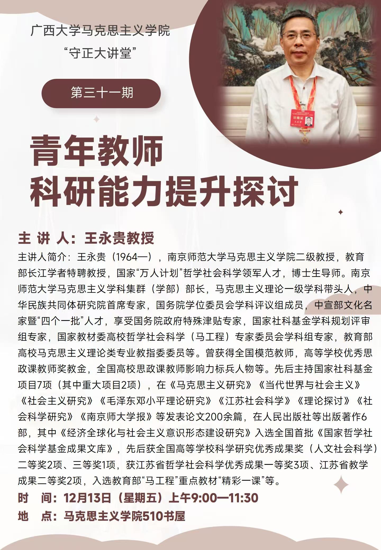 守正大讲堂 第31期||青年教师科研能力提升探讨