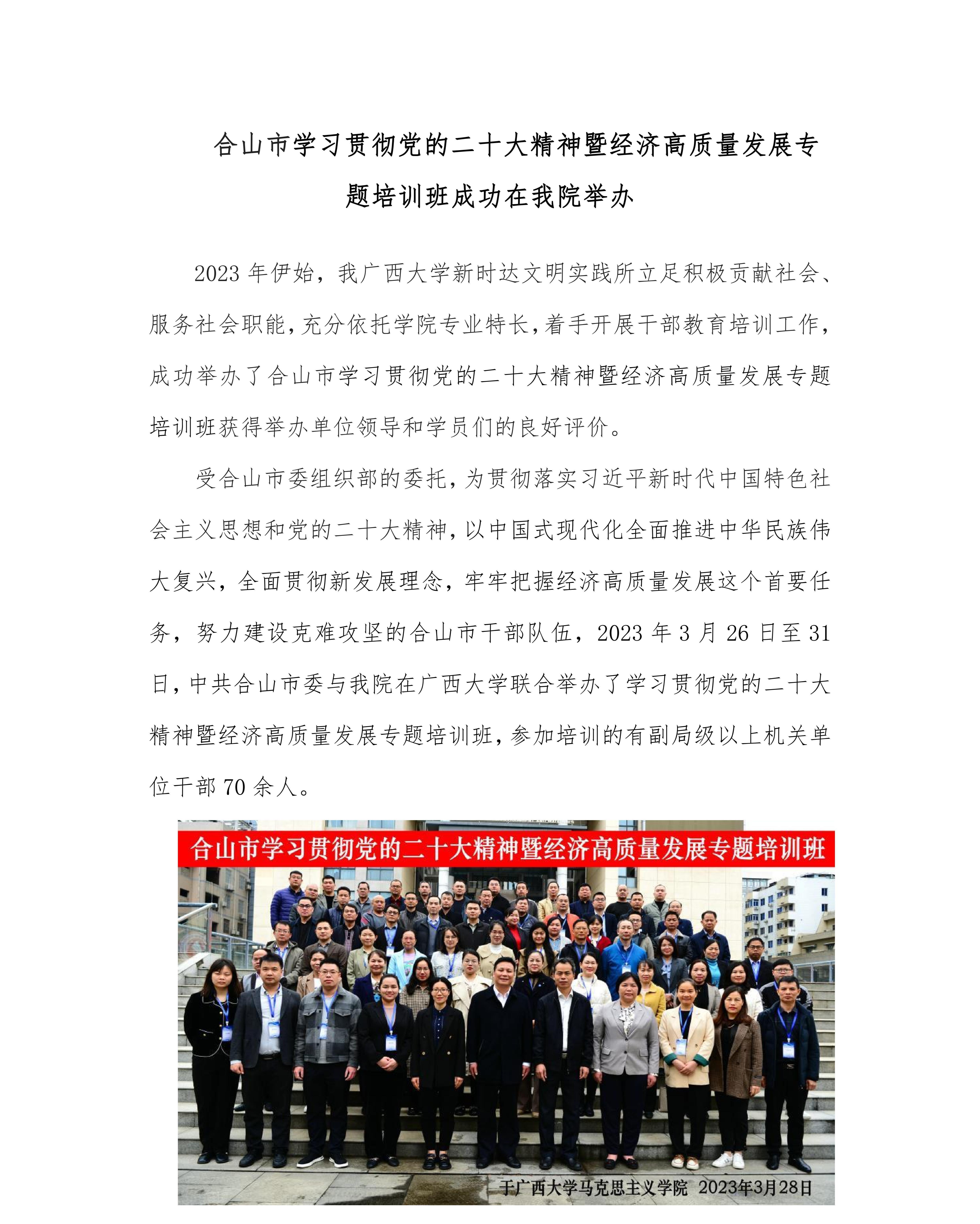 合山市学习贯彻党的二十大精神暨经济高质量发展专题培训班成功在公司举办